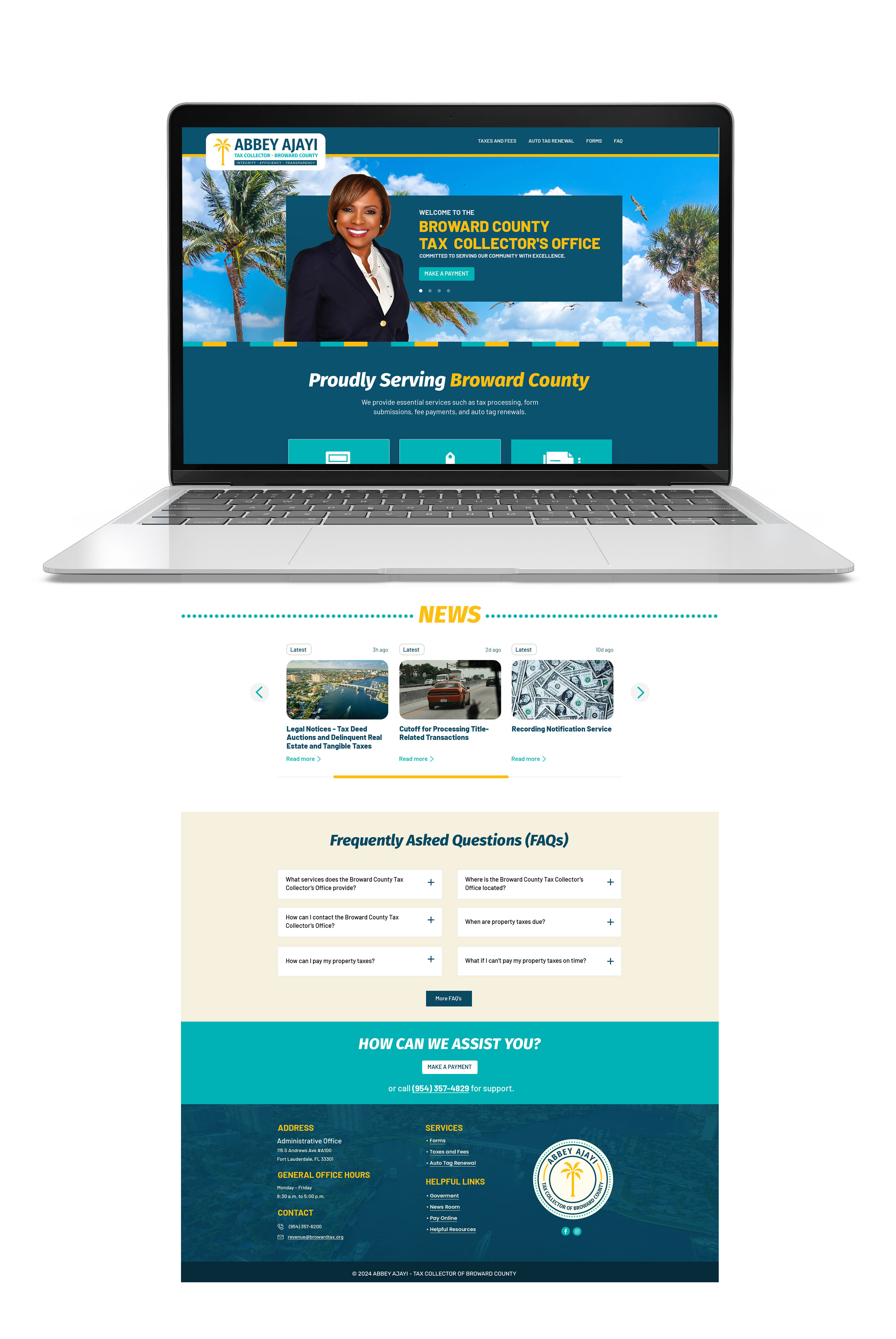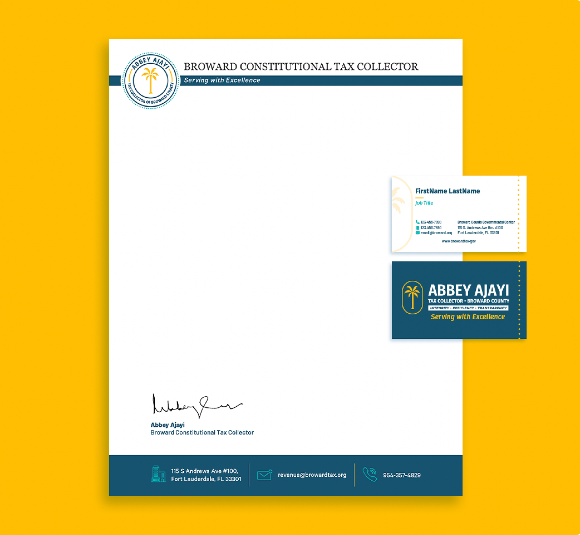 In 2020, the residents of Broward County, Florida voted to establish an independent tax collector’s office, a historic change in local government. Abbey Ajayi was elected as the county’s first-ever tax collector, charged with building a brand-new institution from the ground up. Rather than following the traditional, bureaucratic look of government agencies, Abbey sought a bold, modern brand that would stand out while still conveying trust, efficiency, and accessibility.